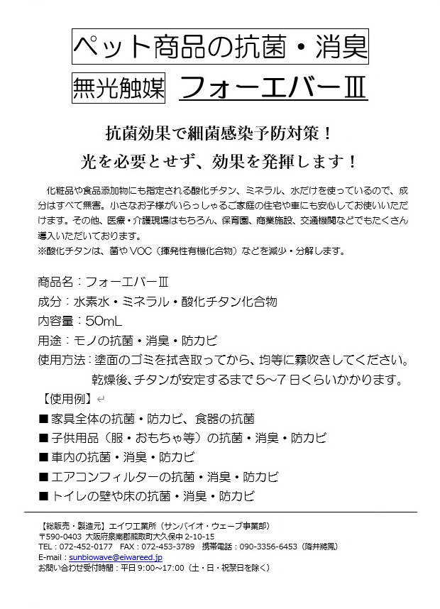 詳細【無光触媒】フォーエバーⅢ